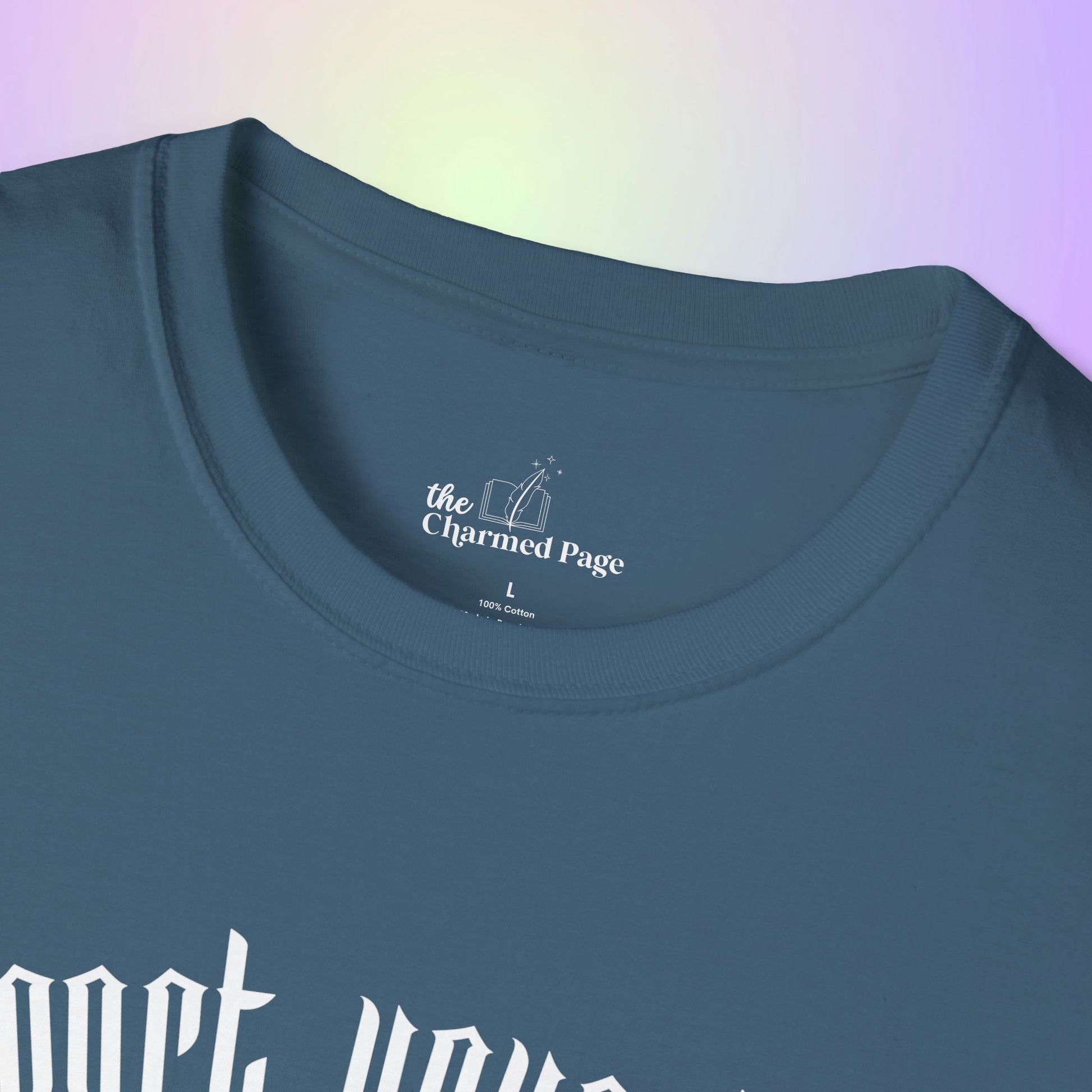Made from ethically harvested, ring-spun U.S. cotton with a pearlized tear-away label for ultimate comfort, it offers a classic fit perfect for both casual wear and bookish gatherings.