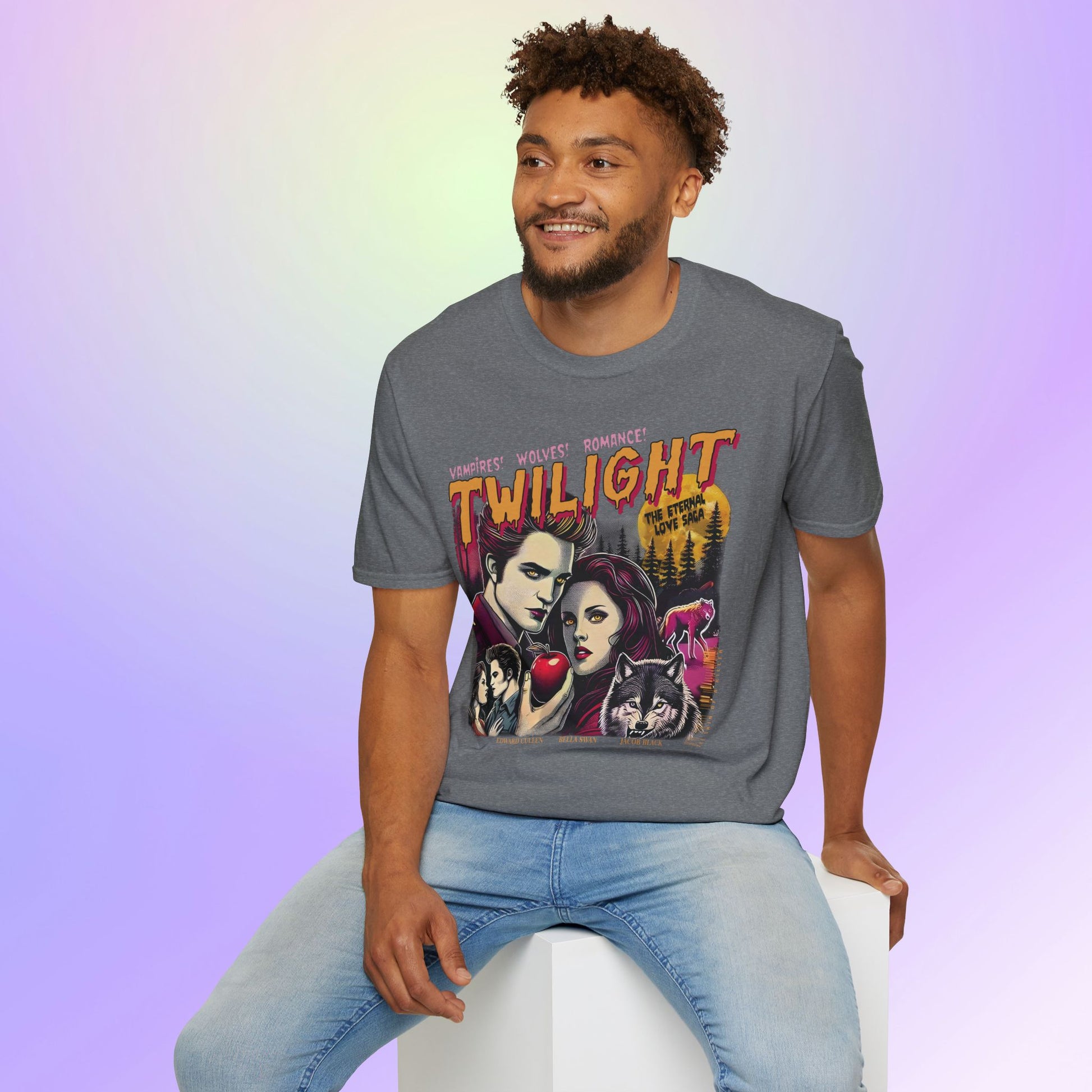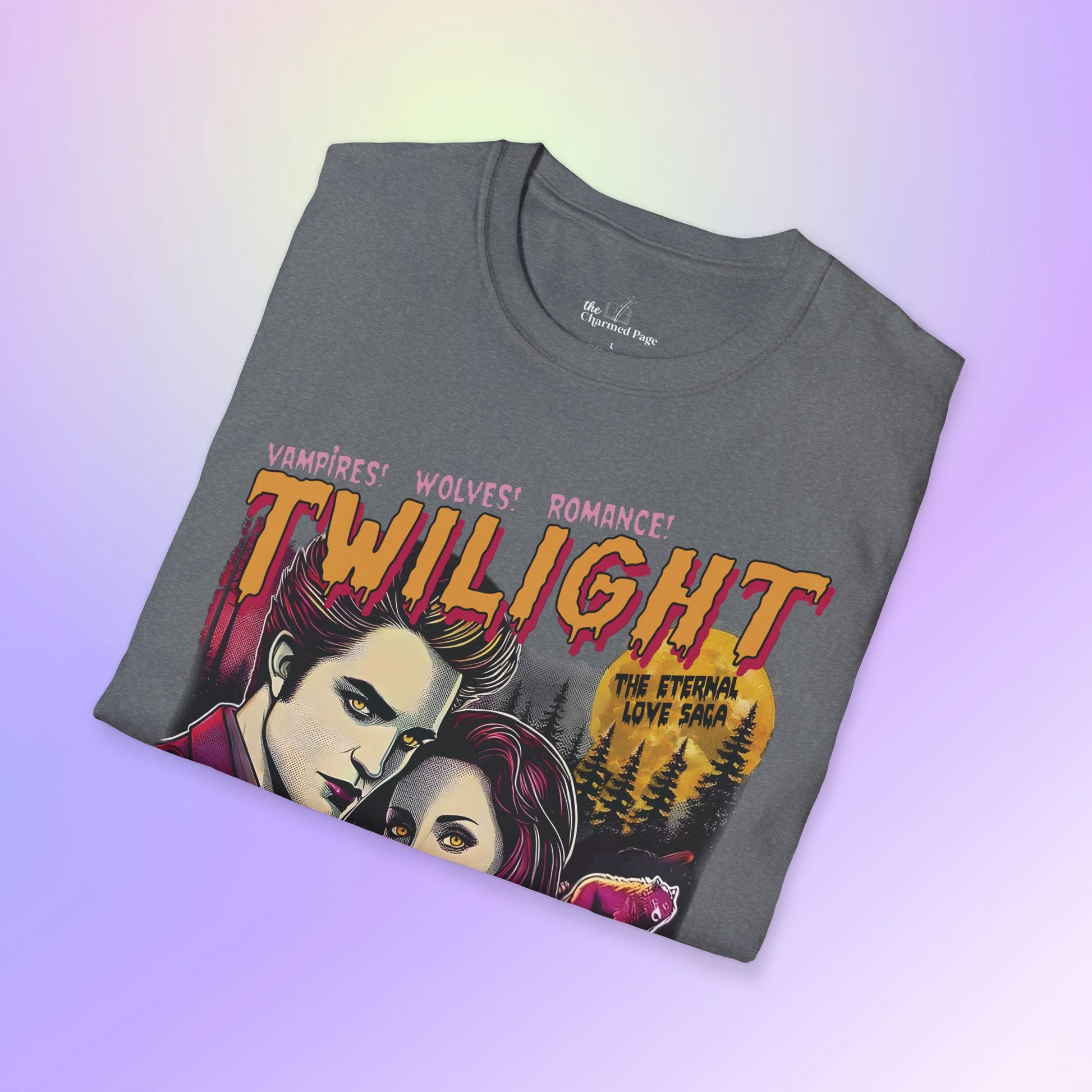 Channel your inner 2000s nostalgia with this Twilight-inspired tee — printed in bold, retro comic-book style worthy of Forks’ most dramatic saga! Crafted from super-soft, durable fabric, this unisex shirt delivers comfort for every season and every supernatural mood.