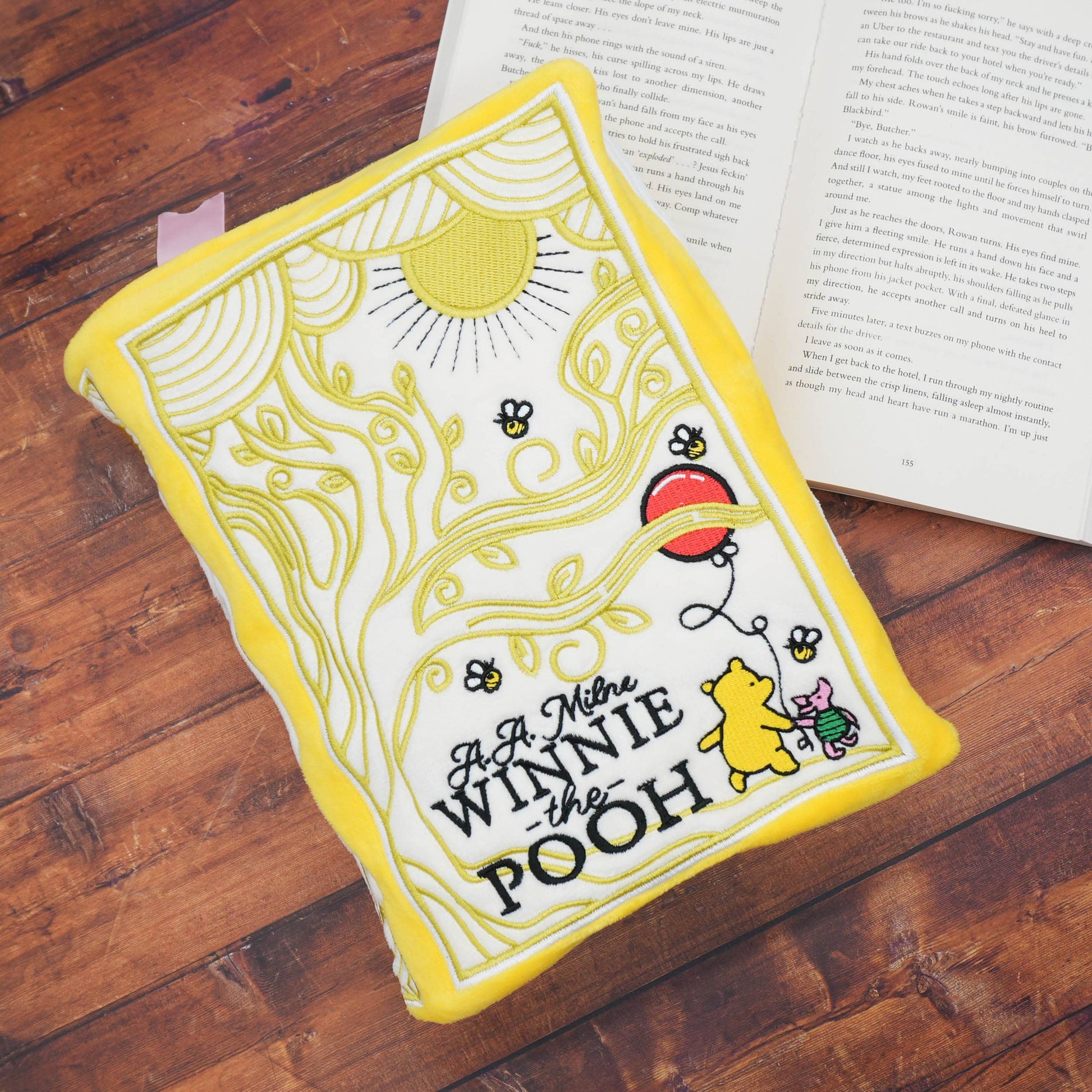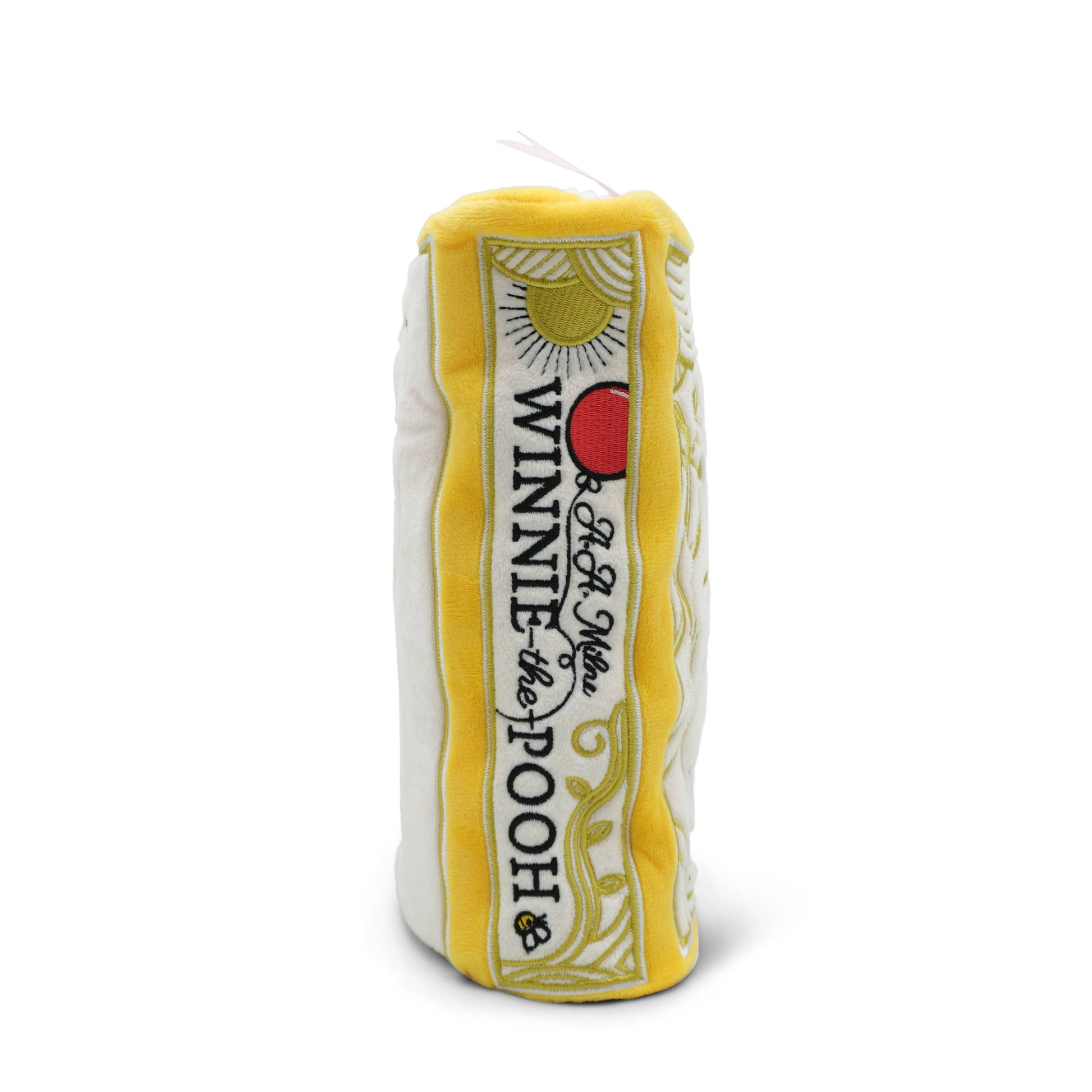 This book plushie pays homage to everyone’s favorite honey-loving bear. The cover features a gorgeously embroidered scene depicting a stroll through the Hundred Acre Wood. Turn the book over, and you’ll find a Punchkin face that’s unique to this un-bear-ably adorable design. This Winnie-the-Pooh book plushie would make a wonderful gift and collector’s item for any reading room or nursery.